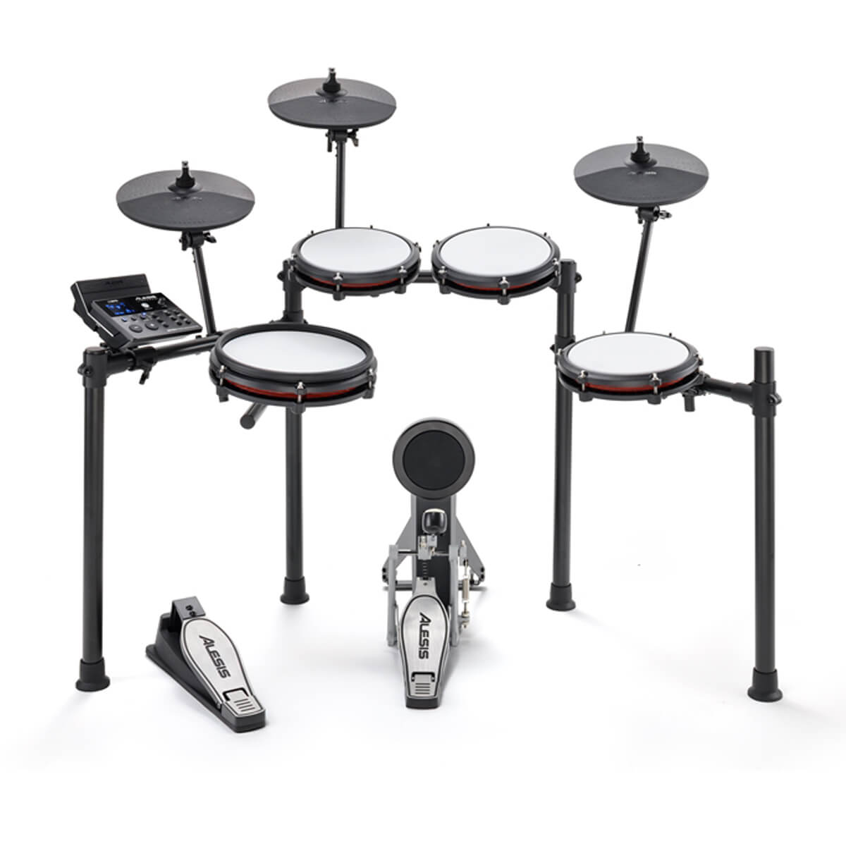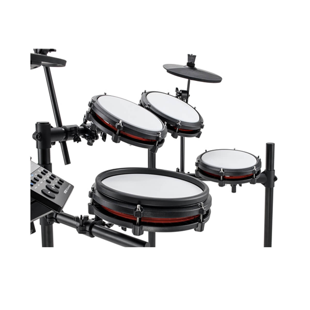 Con le pelli a rete premium a trama fitta di Nitro Max, non c’è bisogno di preoccuparsi che le sessioni di pratica notturne disturbino i vicini o i membri della famiglia, non importa con quanta energia tu suoni. Il kit è dotato di un pad per rullante da 10” a doppia zona e di tre pad per tom da 8” tutti a singola zona e di un pad della grancassa di tipo verticale anch’esso con un’ampia superficie da 8”. Per quanto riguarda i pad dei piatti troviamo un crash da 10″ con funzione choke, un ride da 10″ e un charleston da 10”.